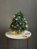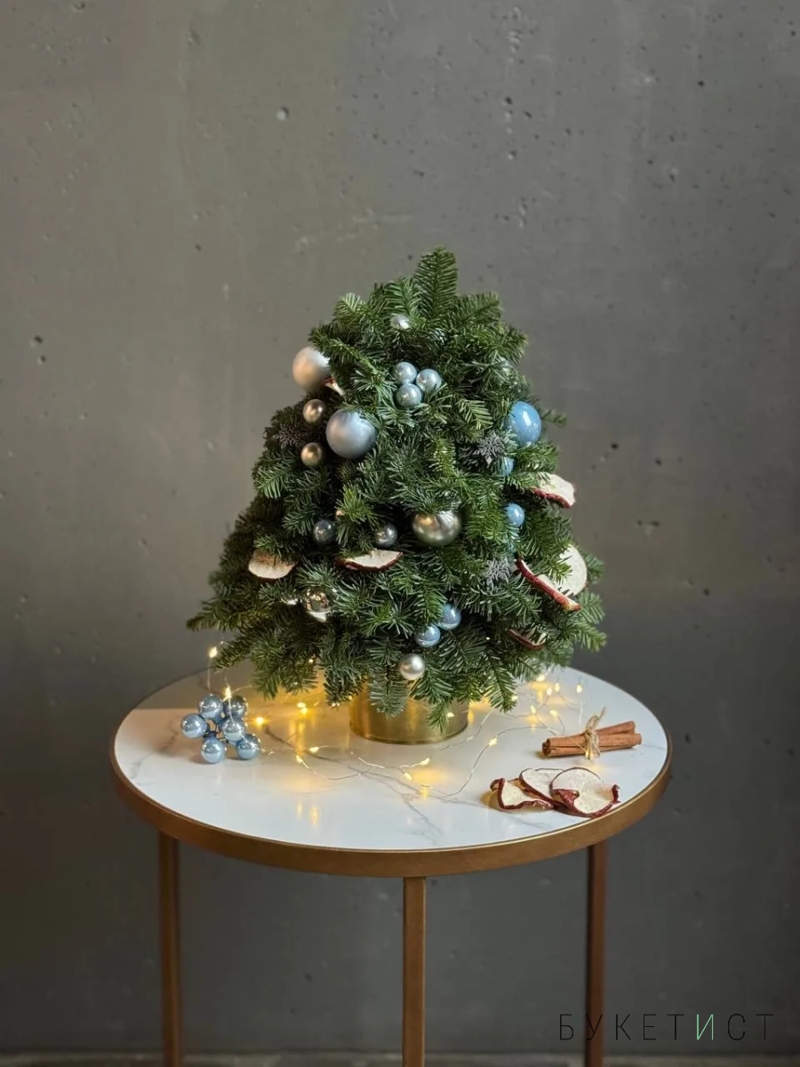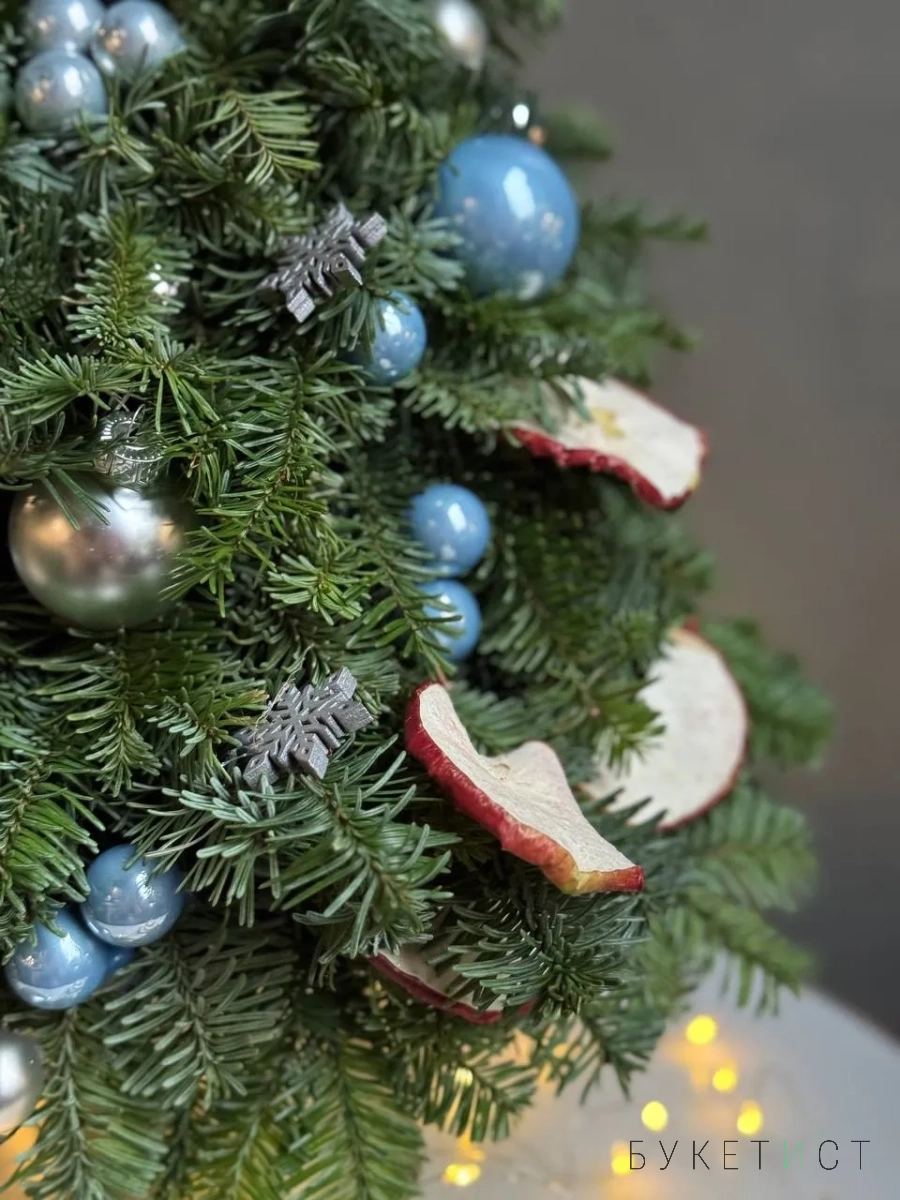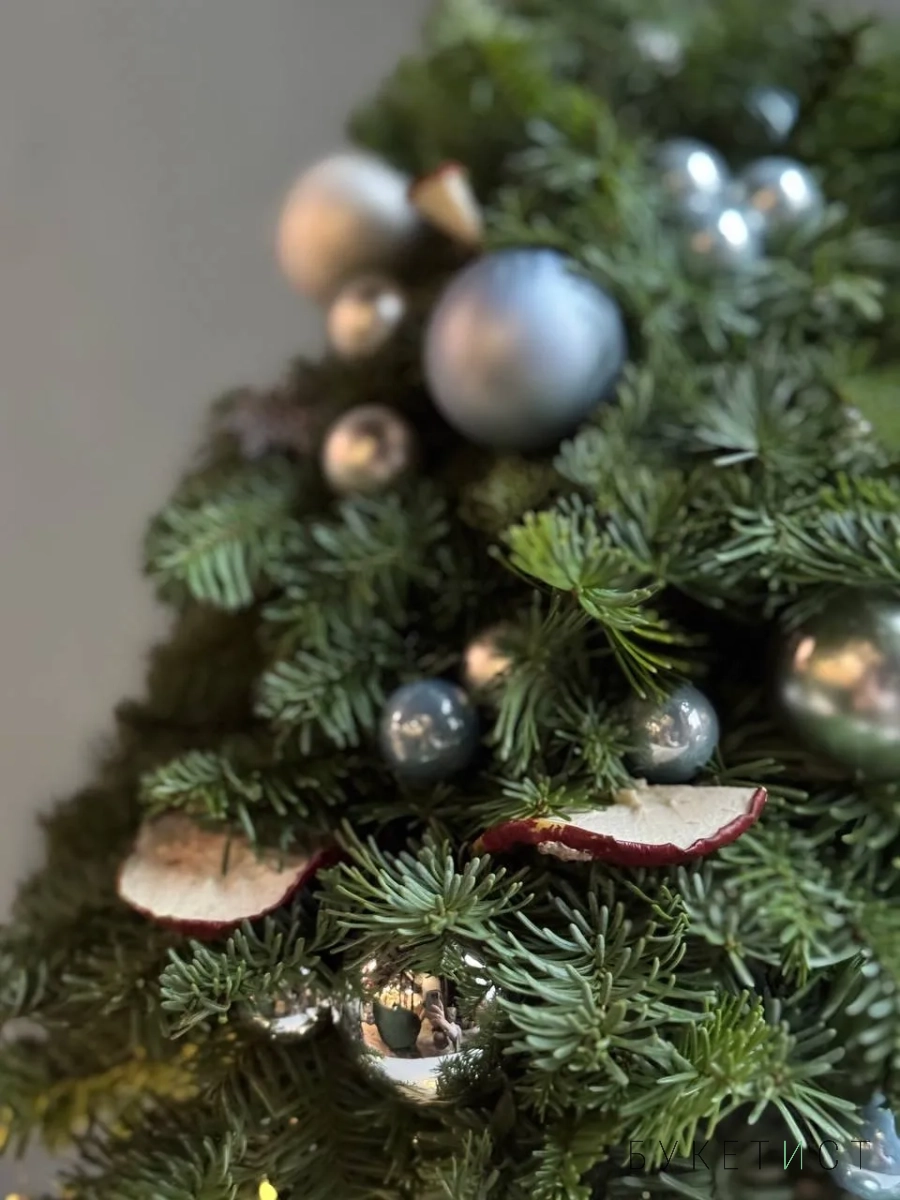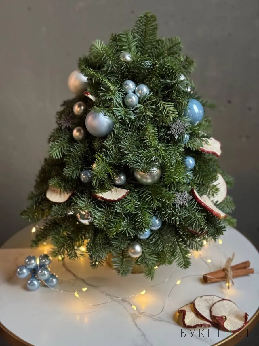 Каждая ёлочка создаётся волшебными руками наших фей-флористов: живые ветви ароматной ели устанавливаются в специальный материал, пропитанный водой - это позволяет изделию держать форму и сохранять свежесть как можно дольше. Украшения аккуратно крепим на специальный клей - уровень эстетического удовольствия просто зашкаливает ❤️