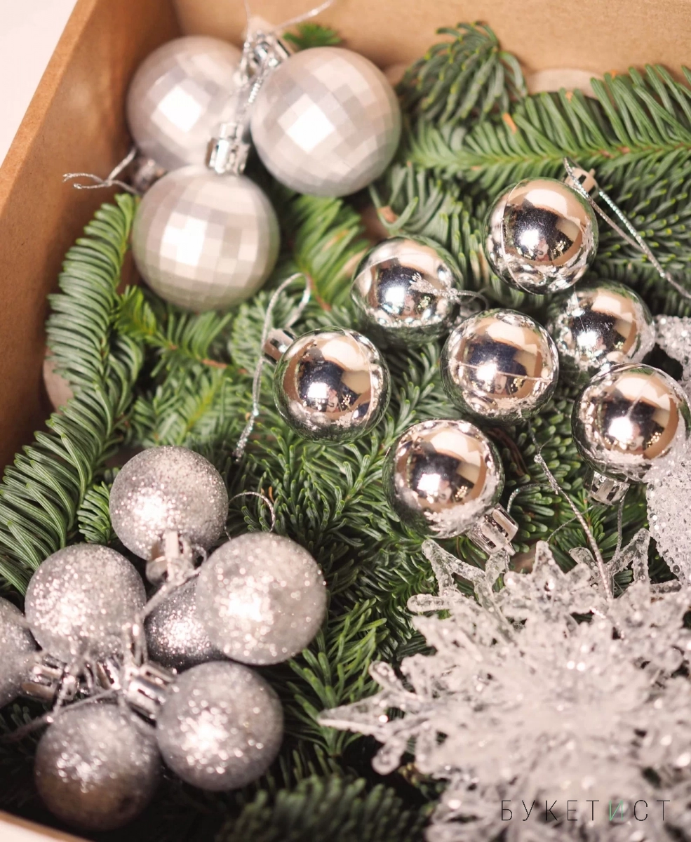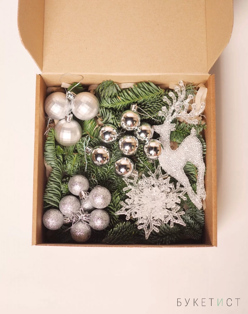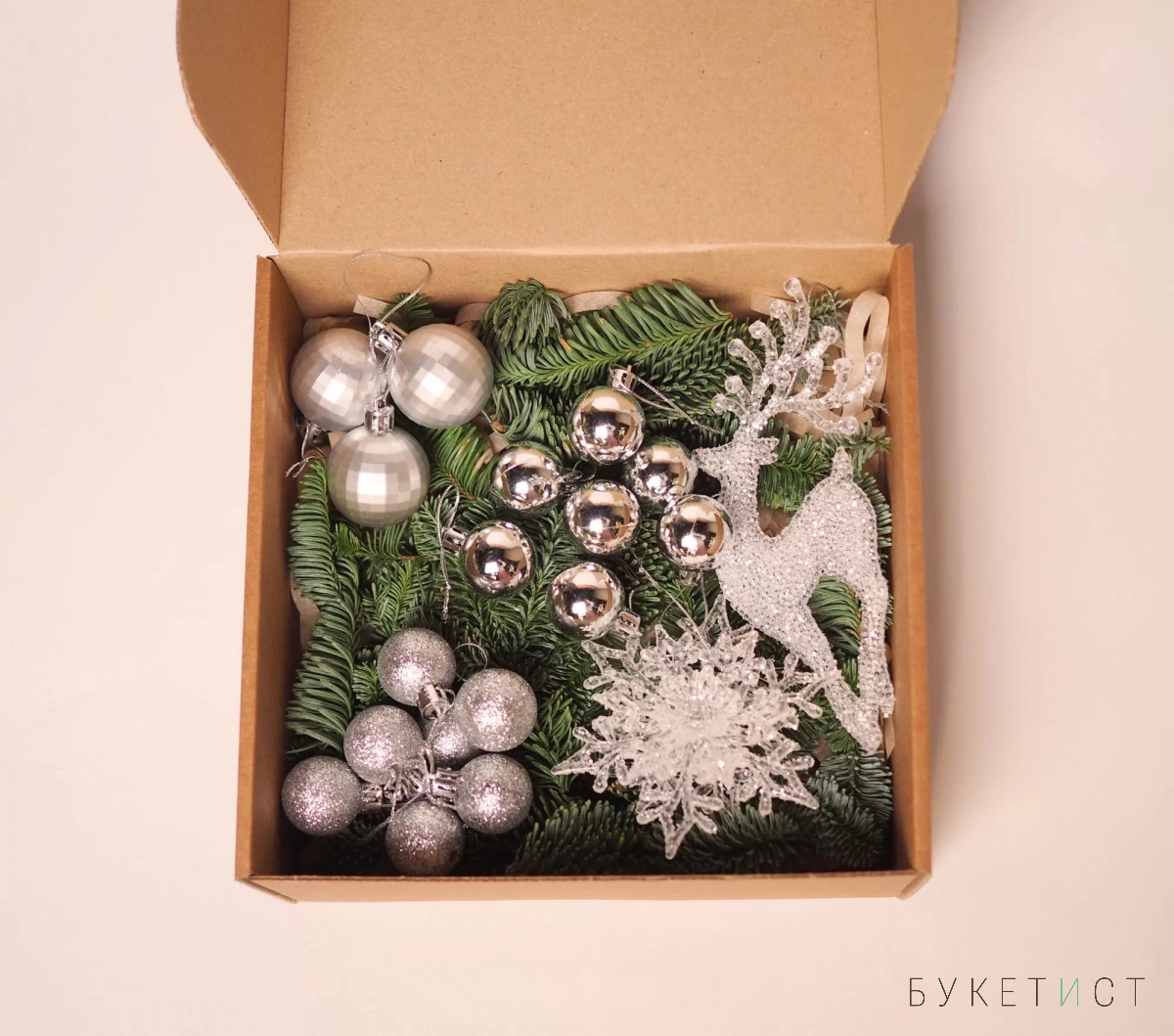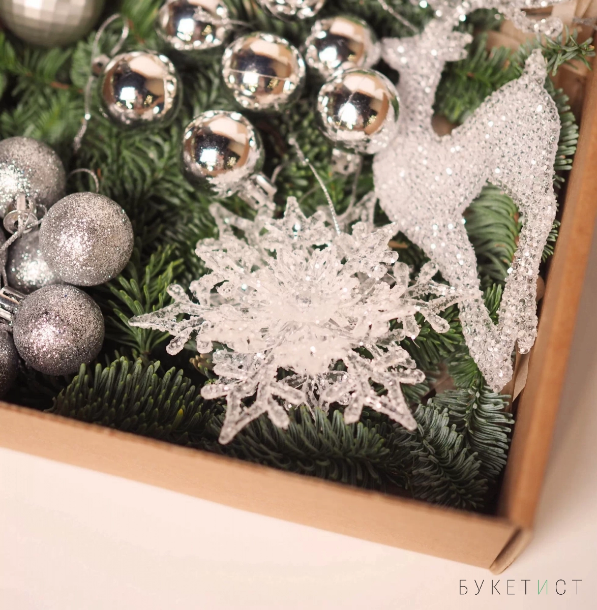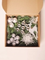 Набор ёлочных украшений с фигурками оленя, снежинки и серебряными шариками