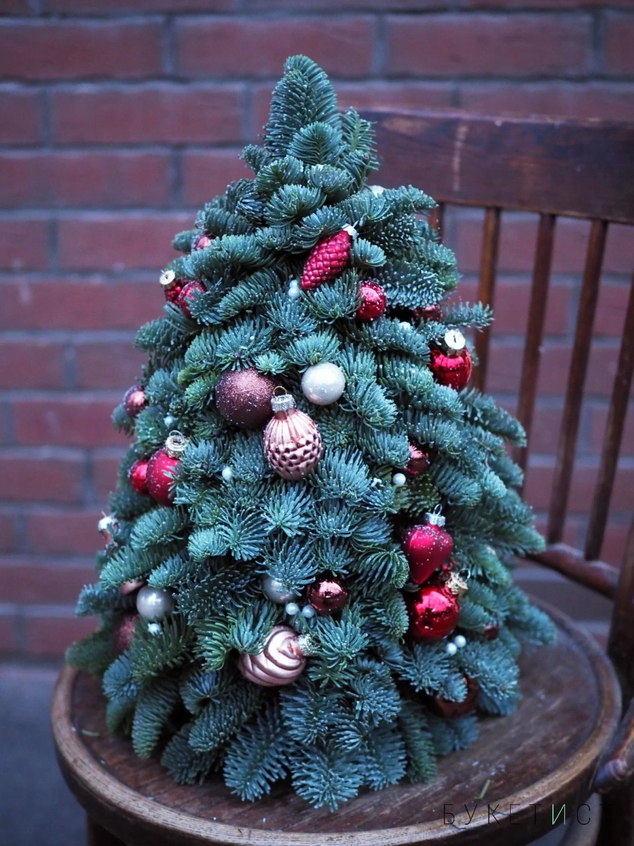 Каждая ёлочка создаётся волшебными руками наших фей-флористов: живые ветви ароматной ели устанавливаются в специальный материал, пропитанный водой - это позволяет изделию держать форму и сохранять свежесть как можно дольше. Украшения аккуратно крепим на специальный клей - уровень эстетического удовольствия просто зашкаливает ❤️