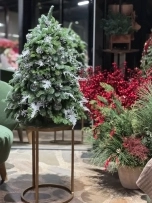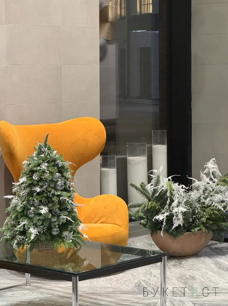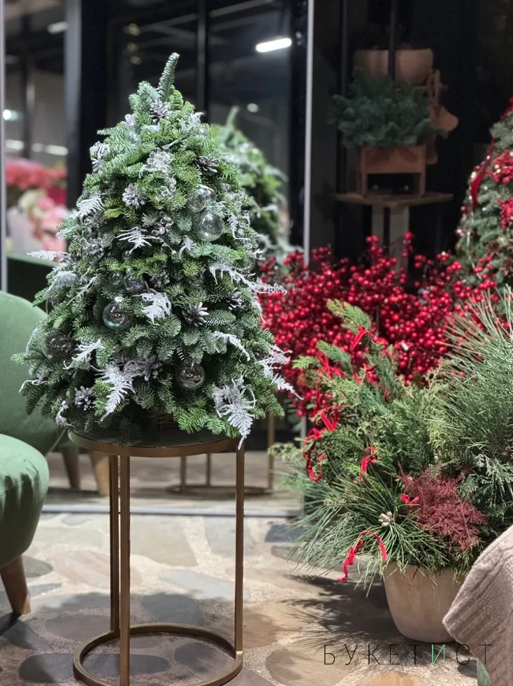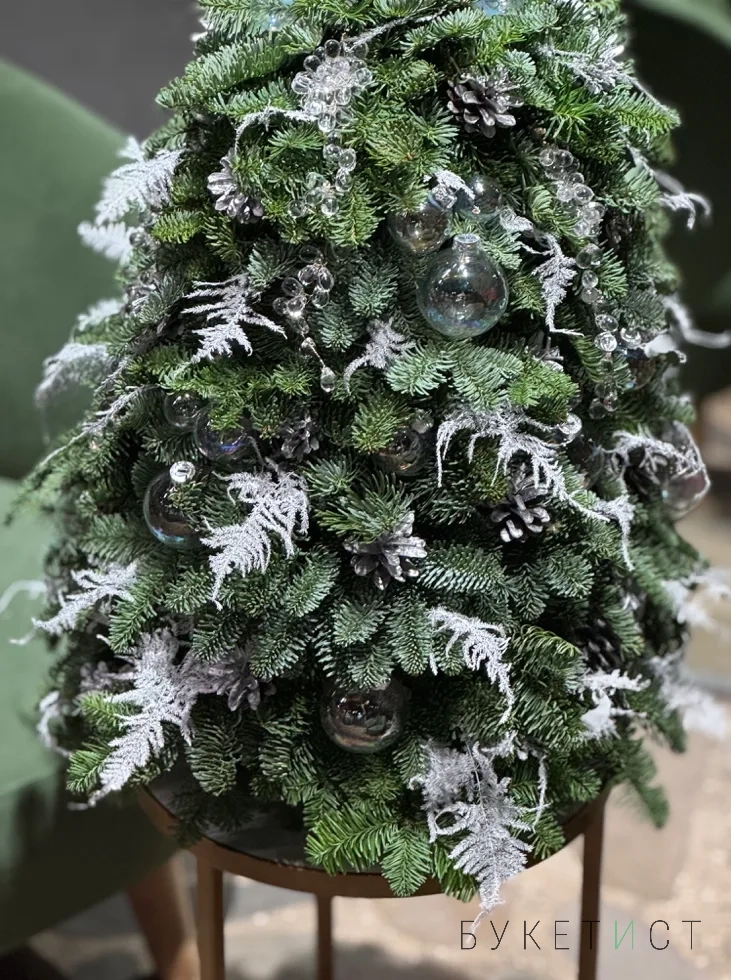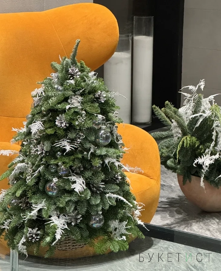 Каждая ёлочка создаётся волшебными руками наших фей-флористов: живые ветви ароматной ели устанавливаются в специальный материал, пропитанный водой - это позволяет изделию держать форму и сохранять свежесть как можно дольше. Украшения аккуратно крепим на специальный клей - уровень эстетического удовольствия просто зашкаливает ❤️