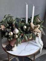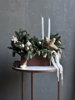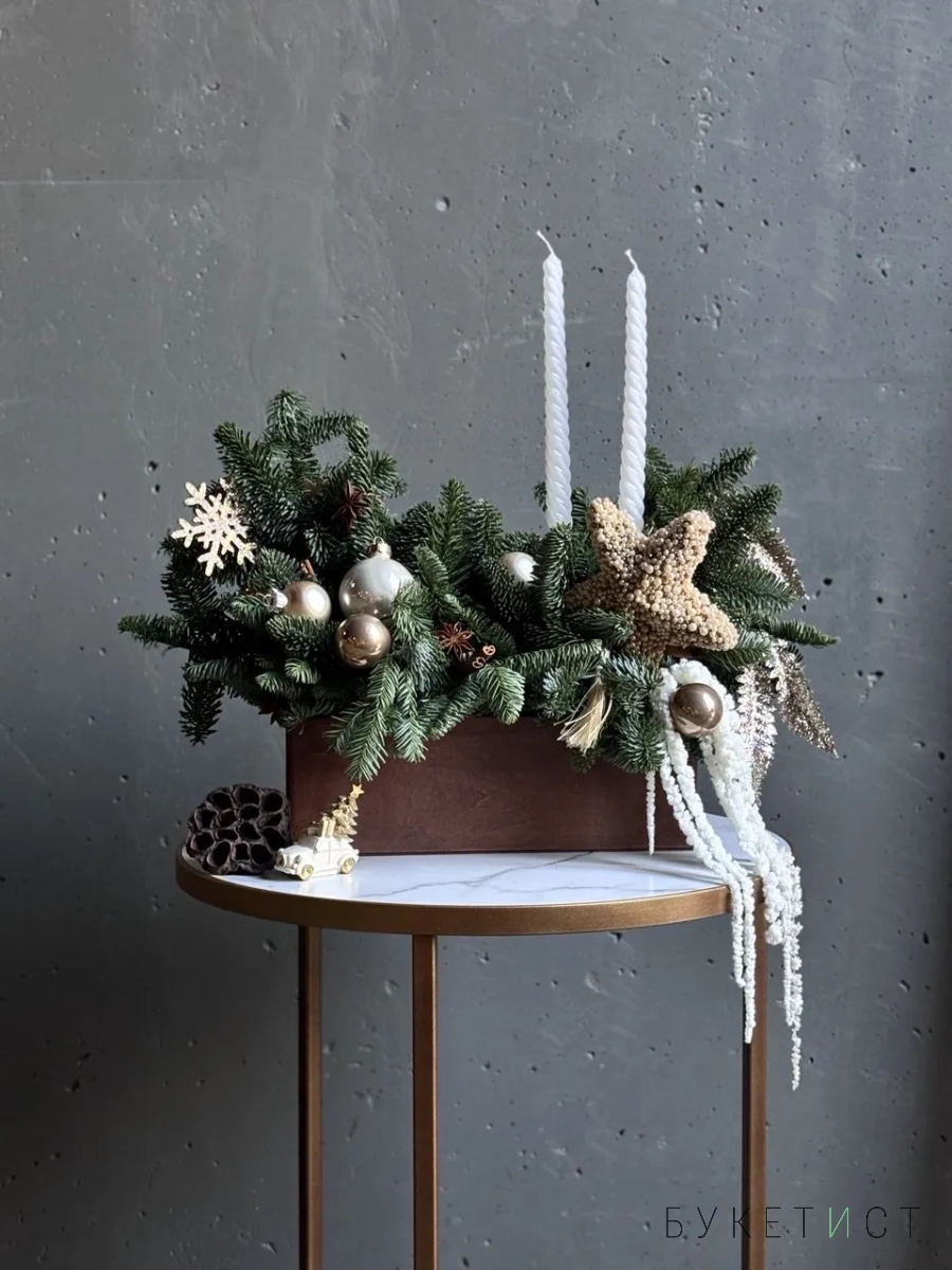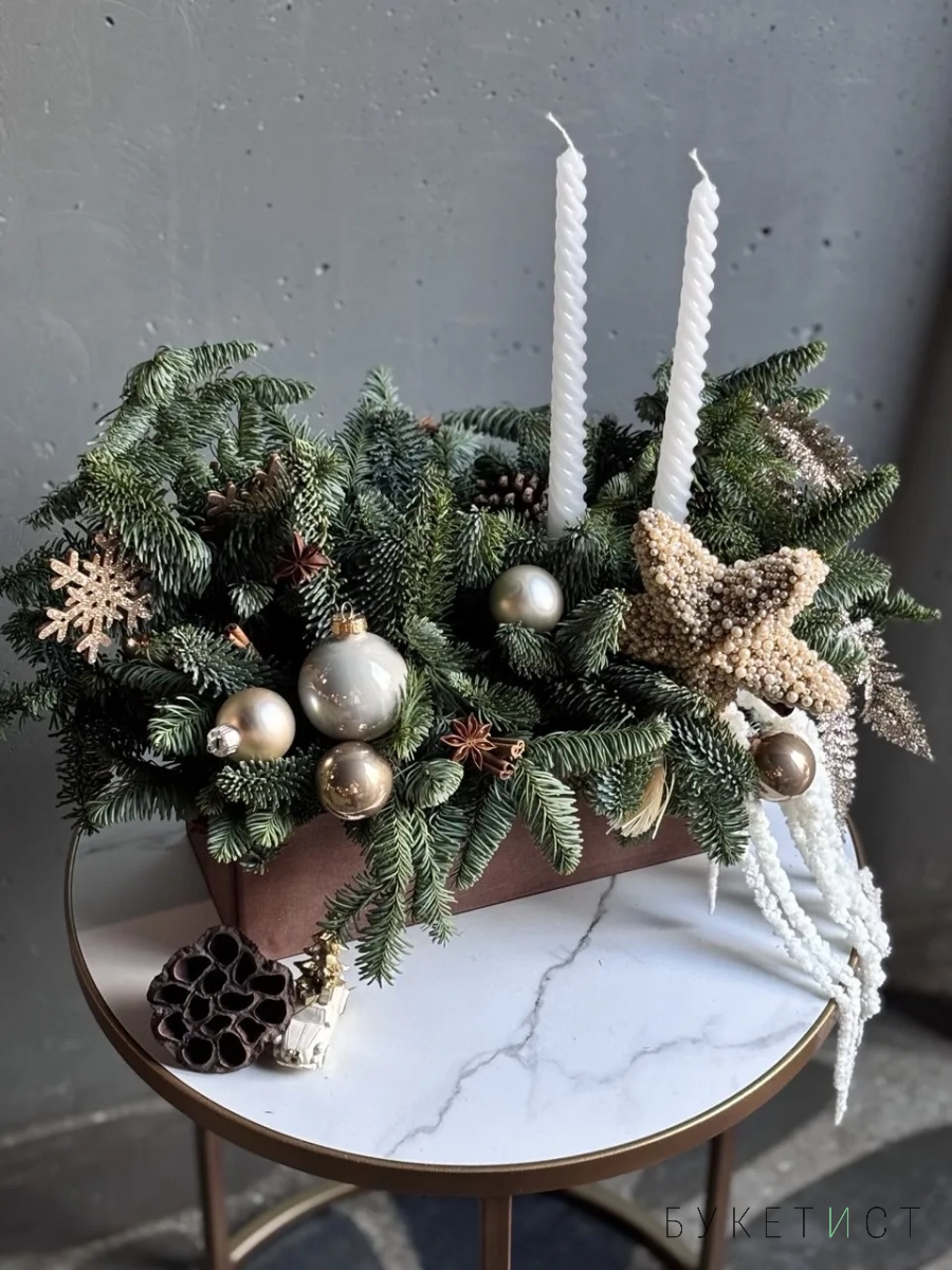 Каждая композиция создаётся заботливыми руками наших фей-флористов: живые ветви ароматной ели устанавливаются в специальный материал, пропитанный водой - это позволяет изделию держать форму и сохранять свежесть как можно дольше. Свечи добавляют особого волшебства - совсем как в рождественском кино ❤️
