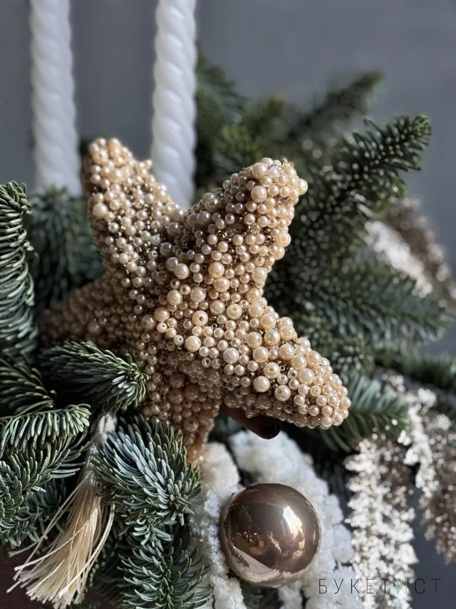 Новогодняя композиция с жемчужной звездой и длинными свечами
