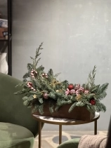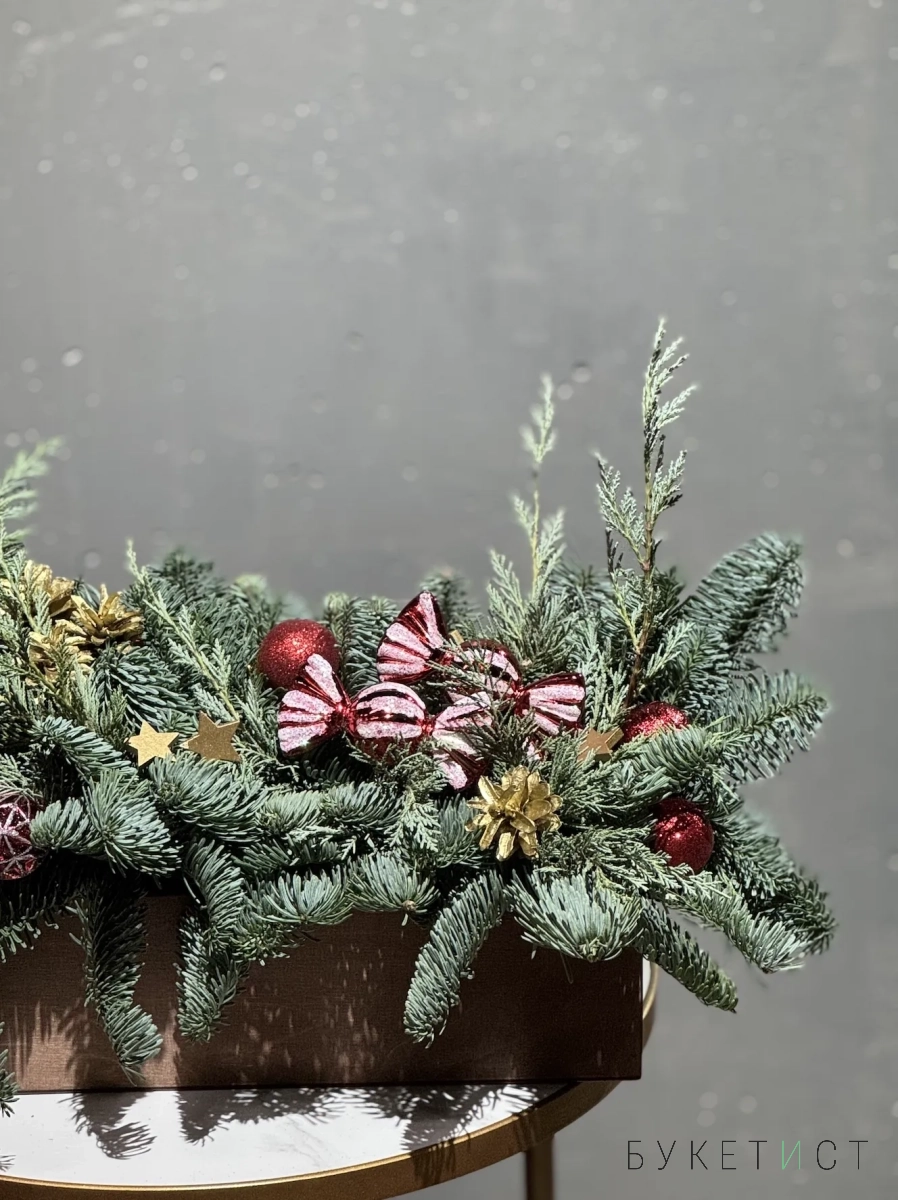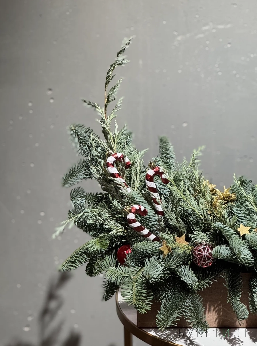 Каждая композиция создаётся заботливыми руками наших фей-флористов: живые ветви ароматной ели устанавливаются в специальный материал, пропитанный водой - это позволяет изделию держать форму и сохранять свежесть как можно дольше. Объёмные игрушки добавляют особого волшебства - совсем как в рождественском кино ❤️