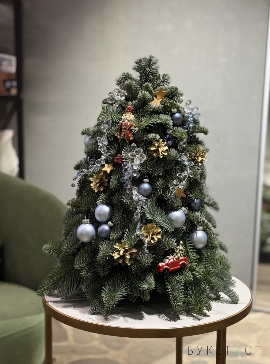 Новогодняя ёлочка на стол из живой ели "Голубые льдинки"