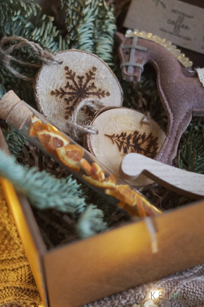 - деревянные игрушки-спилы на ёлку (2 шт)