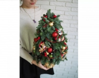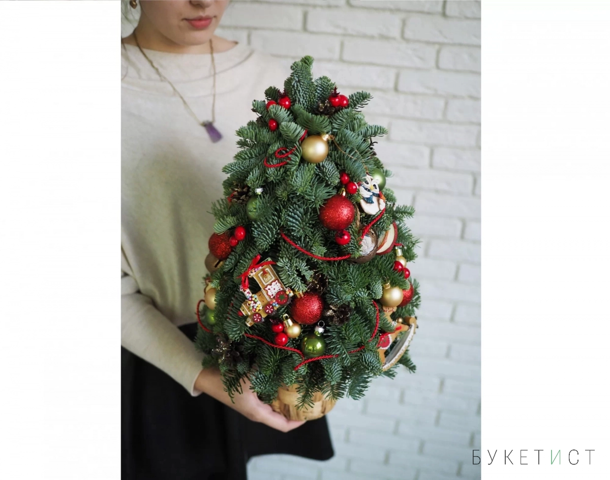 Каждая ёлочка создаётся волшебными руками наших фей-флористов: живые ветви ароматной ели устанавливаются в специальный материал, пропитанный водой - это позволяет изделию держать форму и сохранять свежесть как можно дольше. Украшения аккуратно крепим на специальный клей - уровень эстетического удовольствия просто зашкаливает ❤️