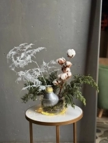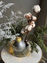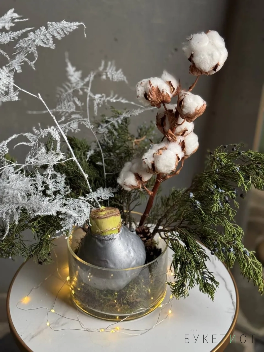 Серебристая композиция с натуральным хлопком и луковицей амариллиса