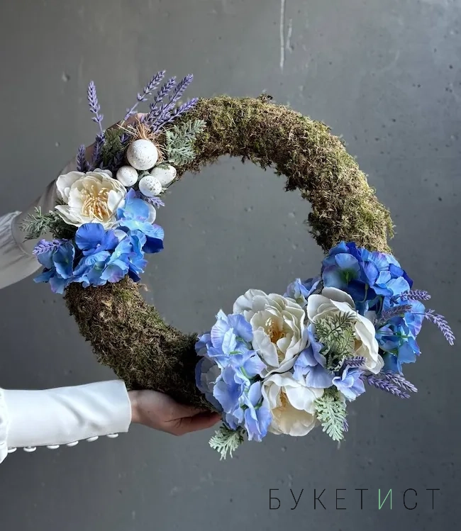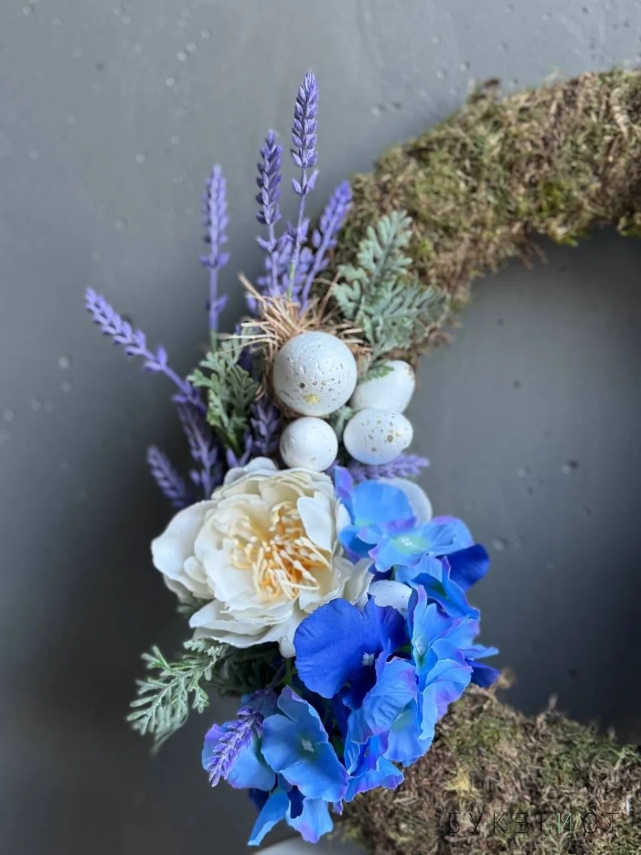 Пасхальный венок - нежность весны на вашем столе. Мягкие пастельные оттенки, белые цветы, яйца-бусины и ленты - создают атмосферу уюта, даже если Пасха уже прошла.
