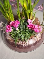Весенняя композиция в стеклянном кашпо