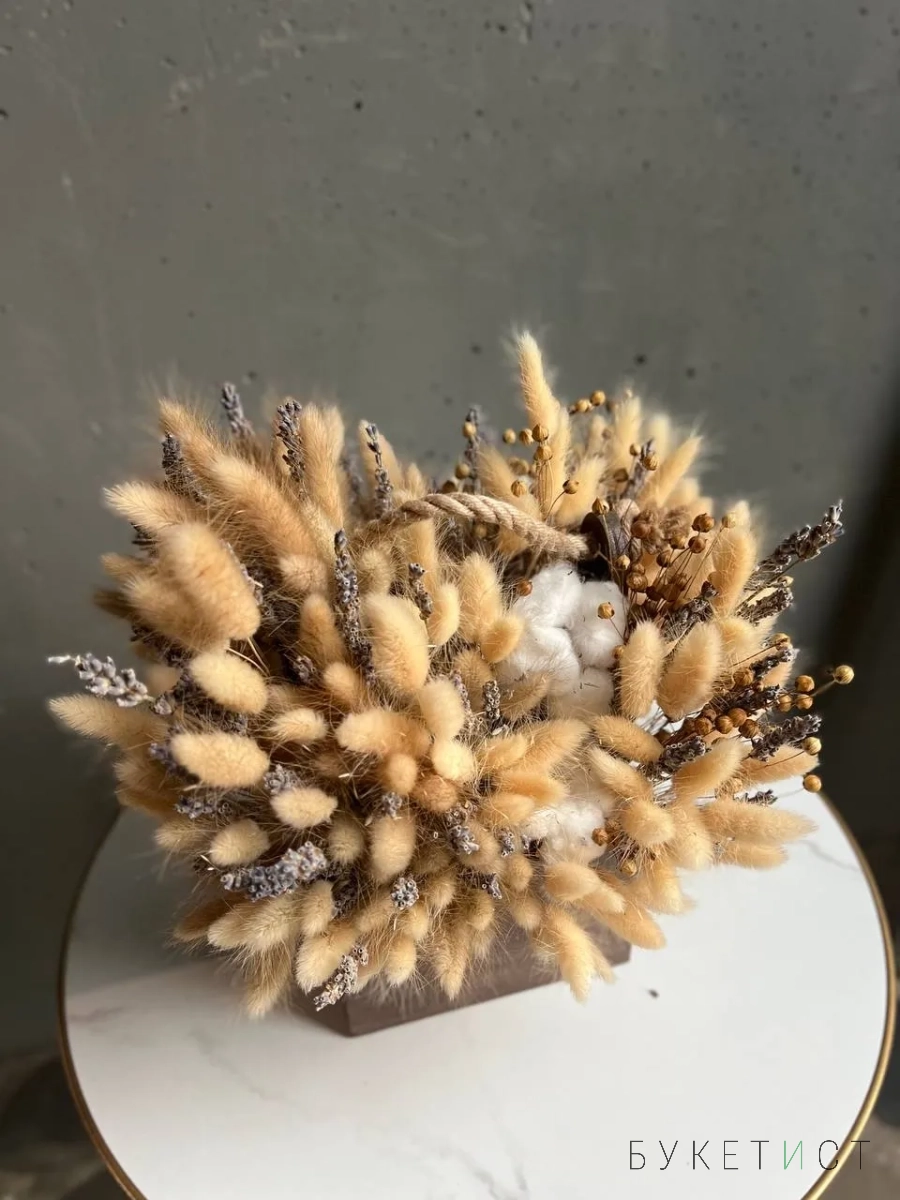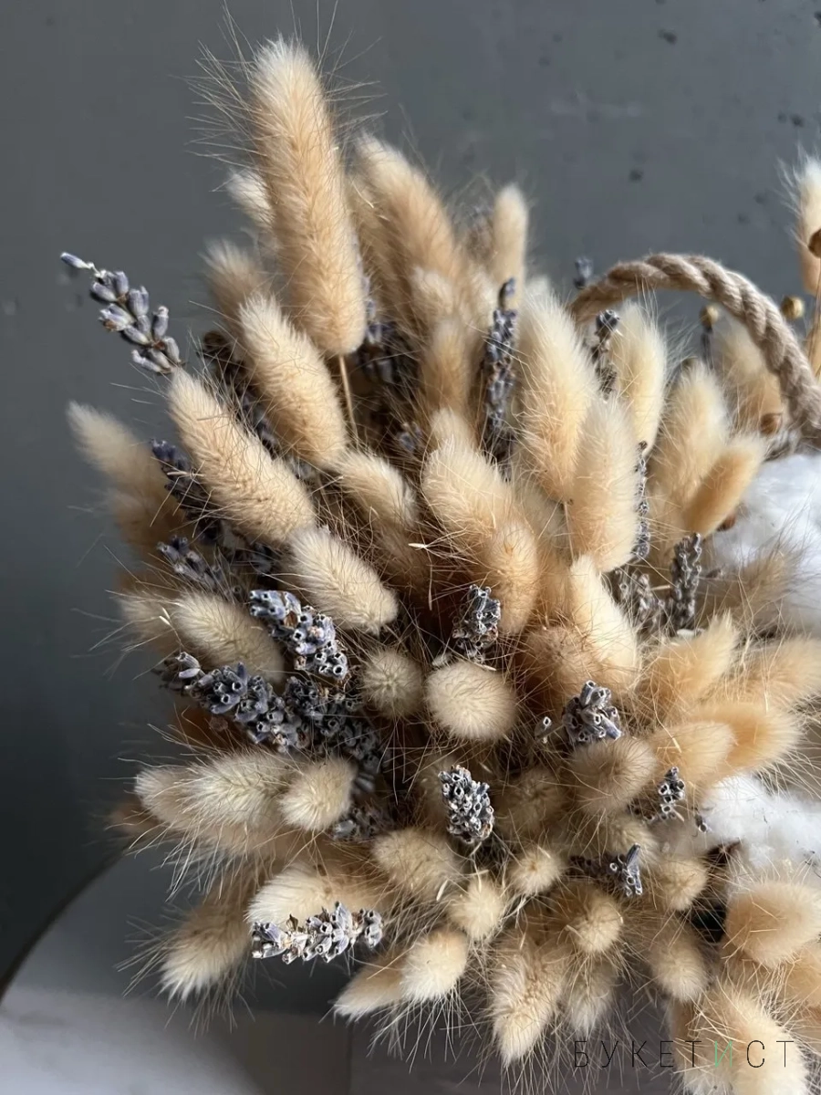 В составе: лагурус, лаванда, хлопок, семяна льна.