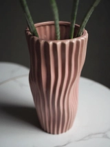 Набор из двух керамических ваз с волнистым рельефом и матовыми пастельными оттенками добавит интерьеру графичности и мягкости. Их асимметрия создаёт выразительную динамику в паре.
