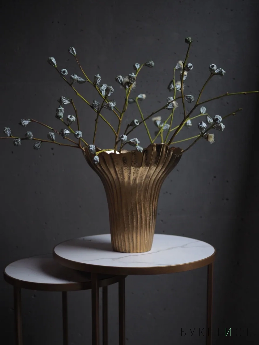 Особенно красиво в такой вазе будут смотреться белые каллы, кремовые розы или минималистичные ветви.