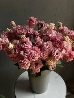 Монобукет ажурной эустомы клубничного оттенка. На фото представлена охапка из 19 стеблей. Прелесть, не правда ли?