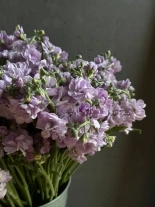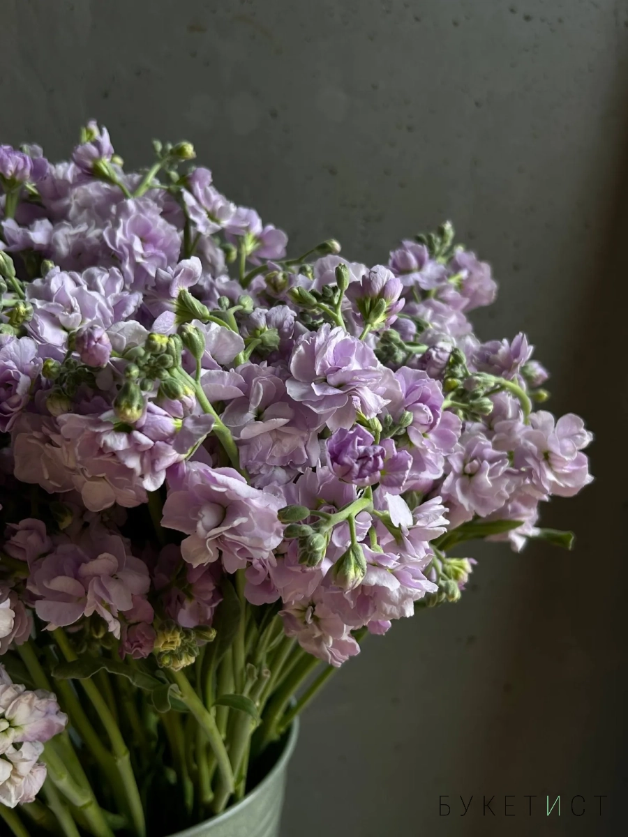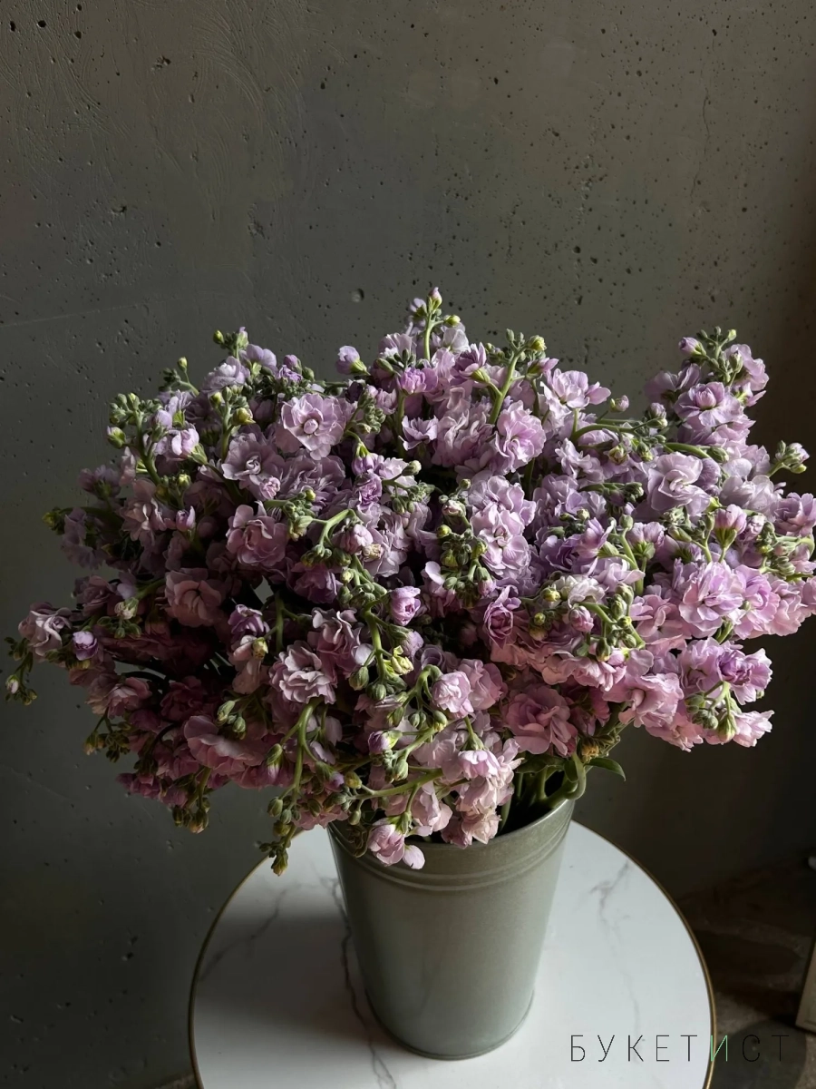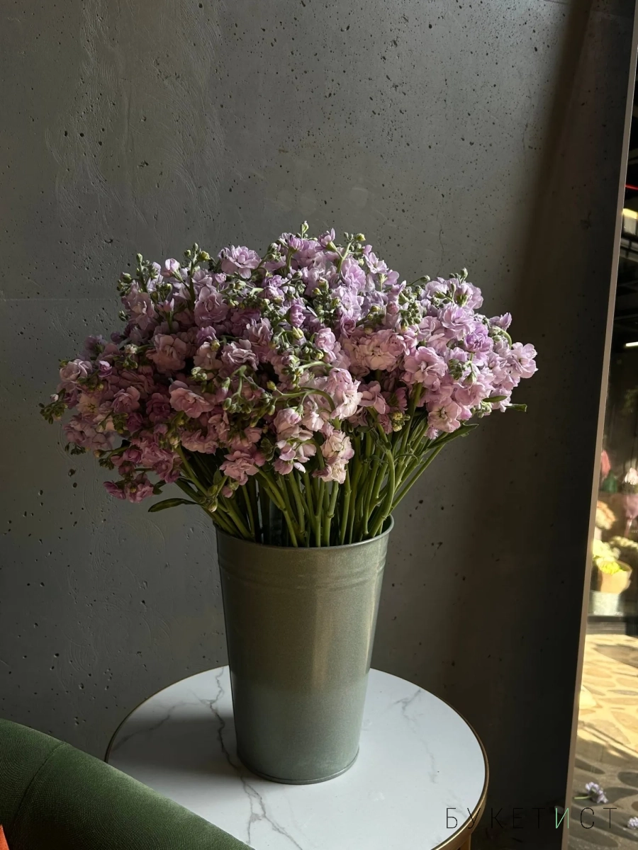 Охапка сиреневой маттиолы в ведре