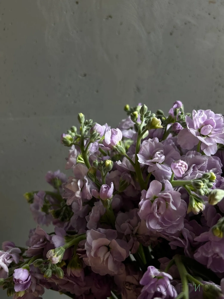 Монобукет нежной маттиолы лавандового оттенка. На фото представлена охапка из 19 стеблей. Прелесть, не правда ли?