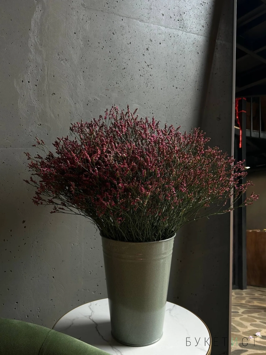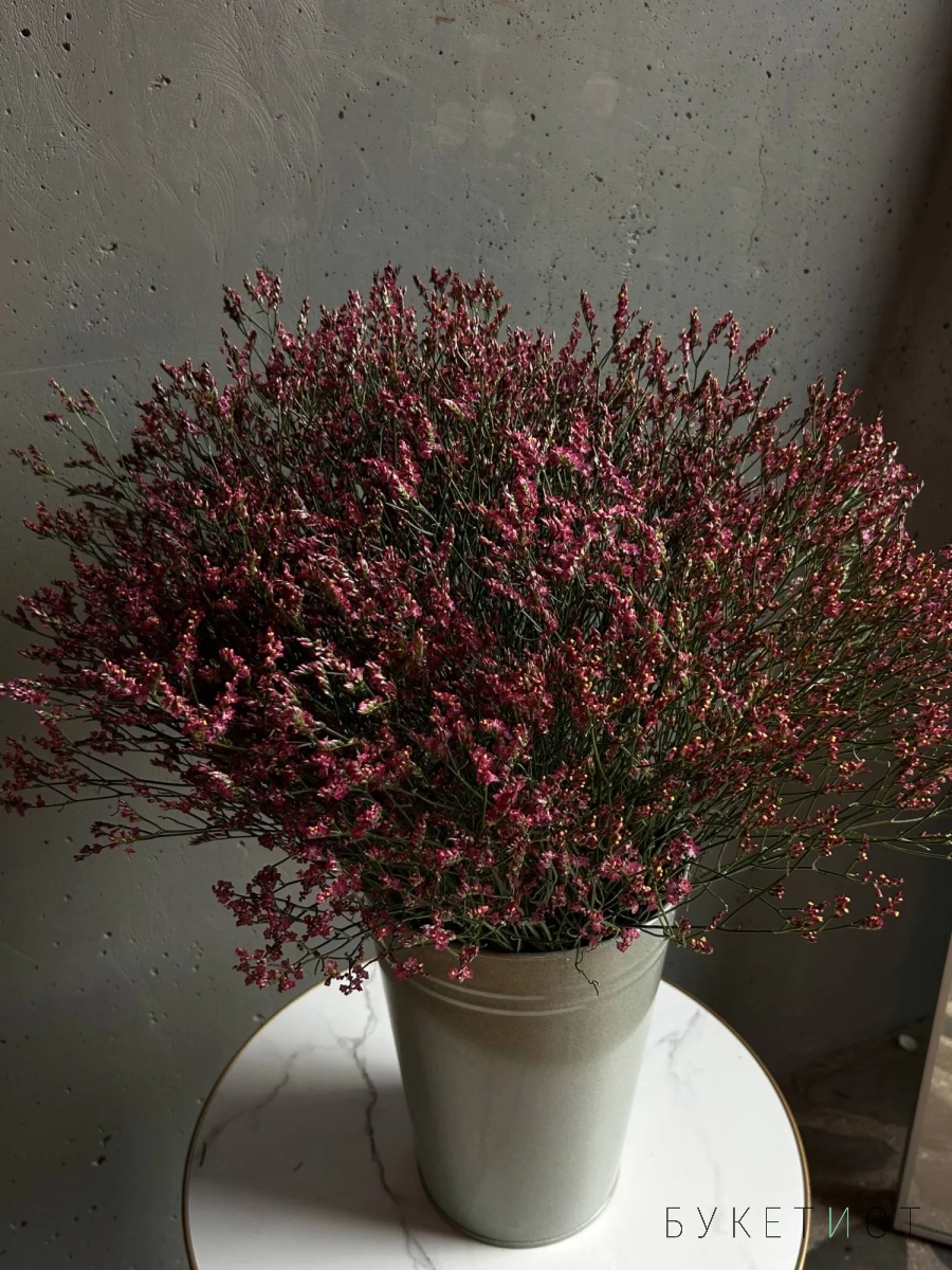 На фото представлена охапка веточек лимониума в глубоком оттенке из 25 веток. Прелесть, не правда ли?