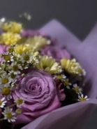 В составе: роза сорта Маритим, кустовая хризантема, танацетум.